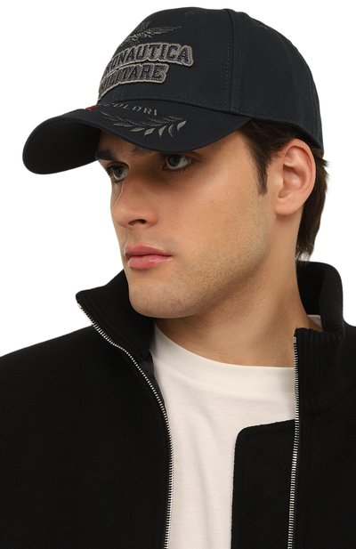Бейсболку с изогнутым козырьком и регулируемым ремешком выполнили из эластичного хлопка. Спереди аксессуар украсили крупным логотипом марки, вышитым нитью в тон.
