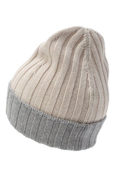 Шапку бини выполнили ребристой вязкой из чистого кашемира. Для лучшей защиты от холодного воздуха у изделия предусмотрели отворот.
