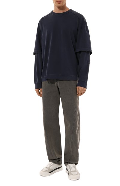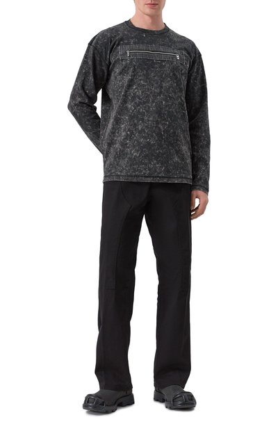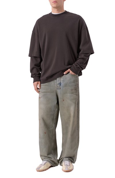 Лонгслив Troy свободного кроя выполнили из хлопкового трикотажа. Модель с двухслойными рукавами дополнили манжетами и поясом в рубчик.