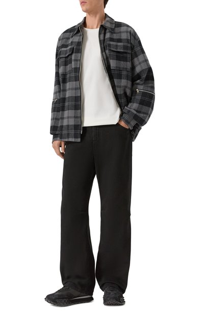 Футболку со слегка спущенной линией плеч изготовили из стрейчевого джерси на основе тенсела и хлопка. Сзади модель украсили нашивкой с фирменным кабошоном.
