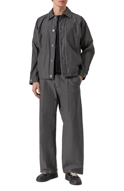 Брюки с защипами в области колен и пятью карманами дополнили поясом-кулиской, регулируемым ремешком с пряжкой фастекс. Модель из хлопкового твила окрасили в готовом виде.