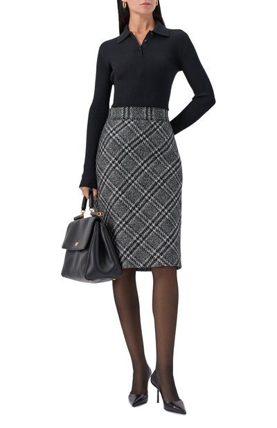 Пуловер с увеличенной круглой горловиной выполнили из тонкого кашемирового трикотажа. Слева над эластичным поясом вышили небольшую монограмму DG.