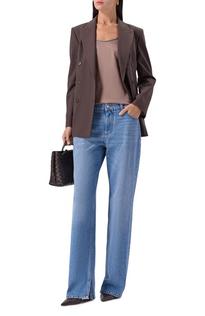 Топ без рукавов впишется и в деловые, и в повседневные образы. Для пошива модели с круглым вырезом использовали тонкий меланжевый трикотаж из чистого кашемира.