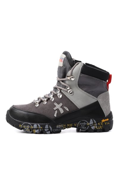 Кожаные ботинки с сетчатыми вставками дополнили регулируемым ремешком с брендированной пряжкой фастекс на подъеме. Модель с боковой молнией и текстильной петлей на заднике поставили на широкую протекторную подошву Vibram.
