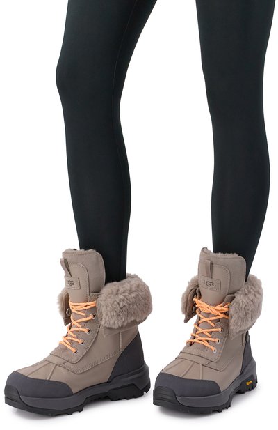 Полусапоги Meribel с текстильной внутренней отделкой и резиновой накладкой на заднике выполнили из нейлона и гладкой искусственной кожи. Голенище модели на широкой протекторной подошве Michelin® дополнили кулиской, регулируемой шнурком с фиксатором, эластичной вставкой и брендированной петлей.