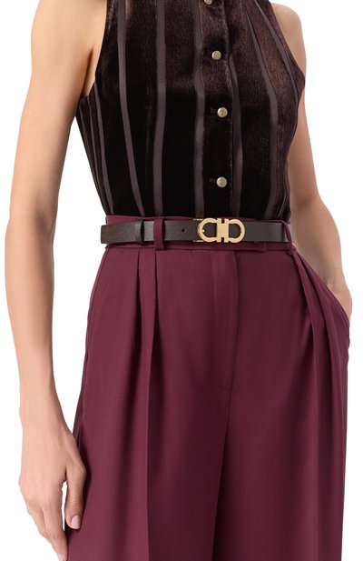 Ремень с кобурной фигурной пряжкой гармонично впишется в casual-образы с джинсами, брюками или юбкой. Аксессуар с двумя шлевками выполнили из гладкой телячьей кожи.