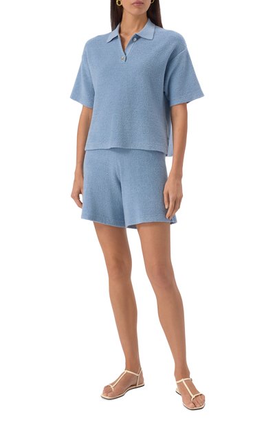 Поло Dylan с поясом в рубчик выполнили из тонкого трикотажа, связанного из шерсти австралийского мериноса. Модель застегивается короткой потайной молнией.