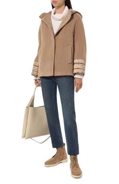 Куртку-рубашку Faith изготовили из шерсти double face. Oversize-модель с прямоугольными манжетами и фигурным низом дополнили накладными нагрудными карманами с клапанами.