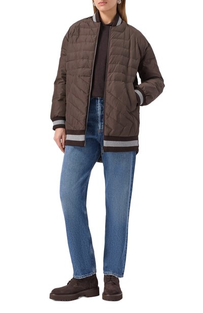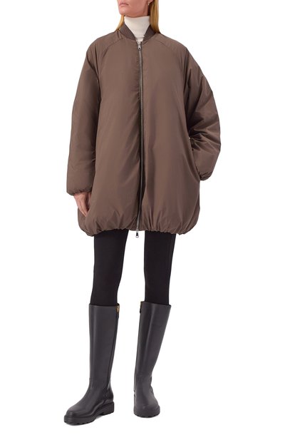 Утепленный бомбер Cecilia сшили из матового полиэстера. Спинку модели с нейлоновым подкладом, кулиской внизу и трикотажным воротником декорировали брендированным прорезиненным патчем.