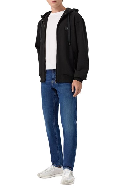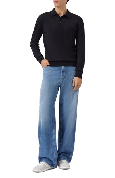Oversize-джинсы из хлопкового денима станут основой непринужденного повседневного образа. Слегка выбеленную модель дополнили пятью карманами, подчеркнув правый задний фирменной двухслойной пластиной.