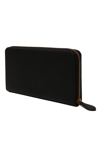 Портмоне со стеганым шевронным узором и аграфом Love Birds спереди выполнили из мелкозернистой овечьей наппы. Внутри аксессуара с круговой молнией – три слота для карт, пара карманов для чеков, отделение для купюр и карман с клапаном для монет.