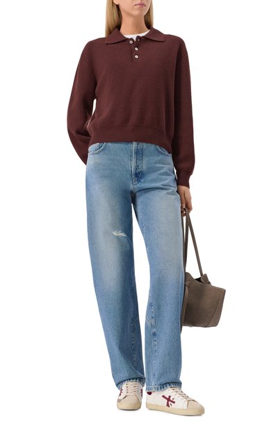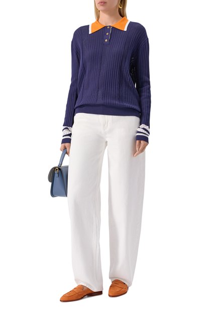 Облегающее поло выполнили из микса полиамида и вискозы. Эластичные манжеты и воротник изделия подчеркнули контрастной двойной полоской, а спинку декорировали брендированным патчем.