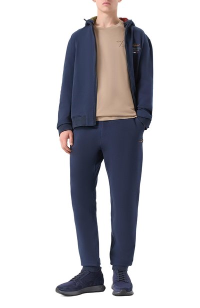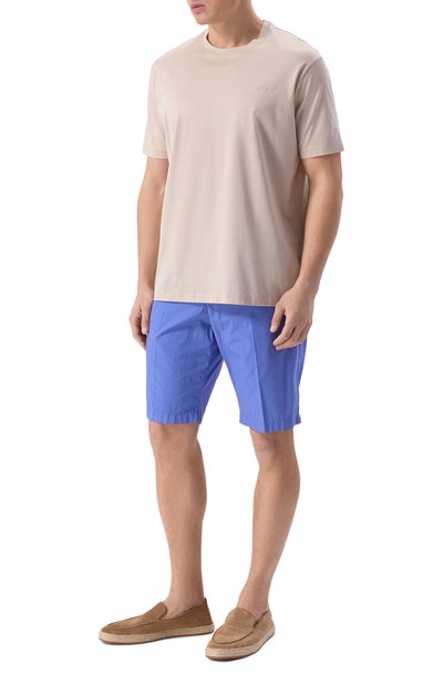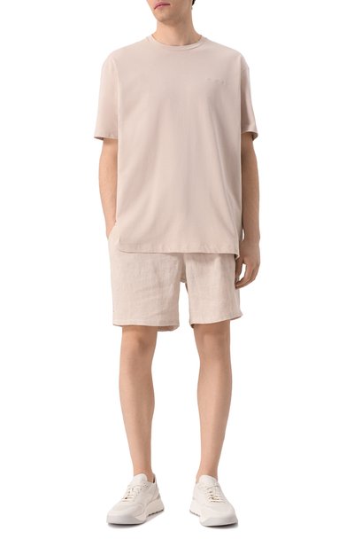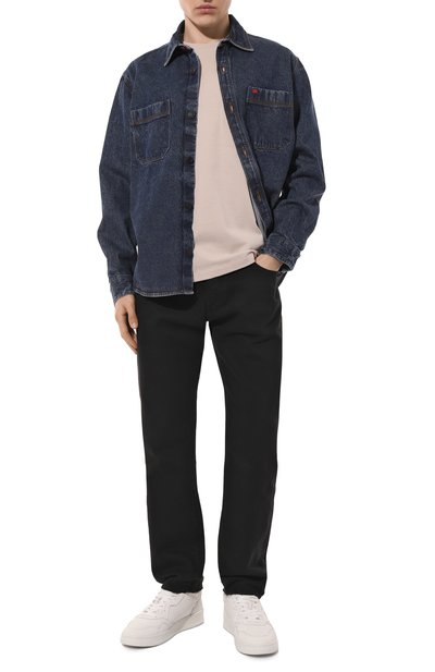 Футболку с неглубокой круглой горловиной выполнили из чистого хлопка. О принадлежности модели марке рассказали брендированным принтом на груди.