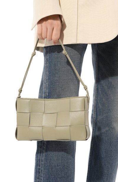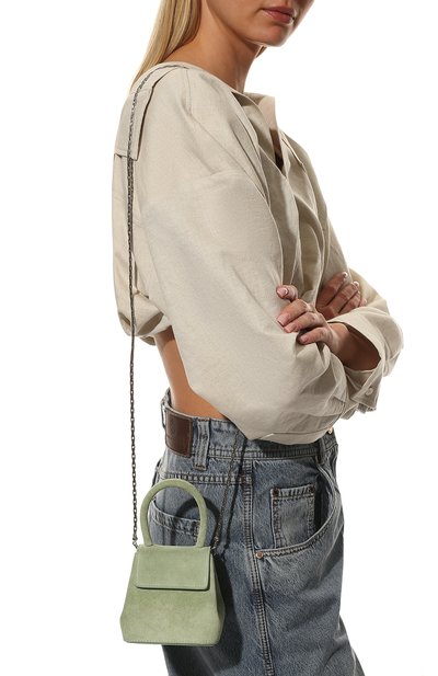 Сумку Handle Me с металлической накладкой на ручке выполнили из мягкой телячьей замши. Модель с магнитной застежкой и ремешком с золотистым логотипом на дне дополнили внутри карманом с молнией и накладным.