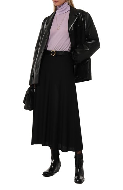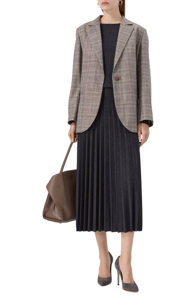 Плиссированную юбку выполнили из шерстяного трикотажа с добавлением шелка и кашемира. Эластичная модель без декора составит идеальный дуэт с парным пуловером.