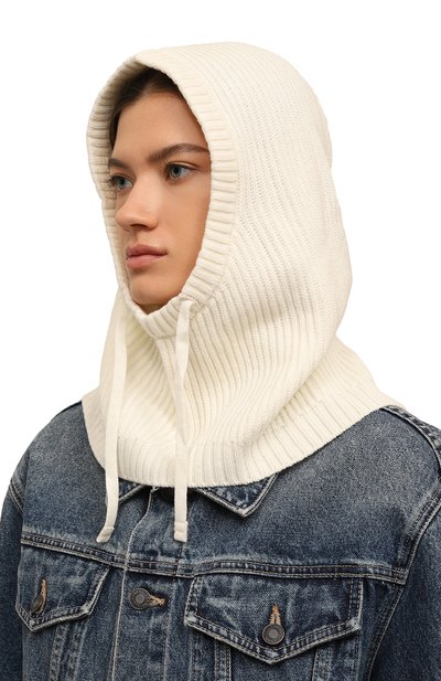 Для пошива капюшона Abigail с широкой манишкой и регулируемой кулиской использовали матовый полиэстер. Аксессуар на утином пуху застегивается встречной молнией.