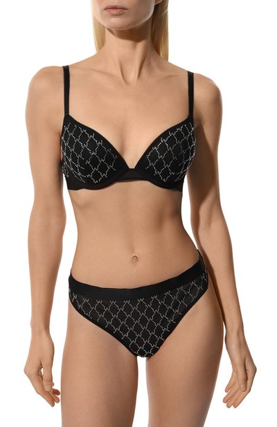 Украшенный вышивкой бюстгальтер-балконет Amela из тюля дополнили атласными лентами сзади, каждая из которых регулируется слайдером. Детали модели с мягкими чашечками на косточках соединили между собой металлической фурнитурой, покрытой 24-каратным золотом.