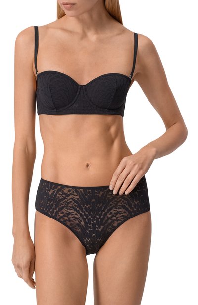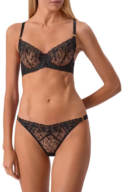 Трусы-слипы из коллекции Nara выполнили из эластичного сетчатого трикотажа ROICA™ Elastane на основе переработанных материалов. На боковых перемычках модель декорировали пряжками-монограммами с покрытием 24-каратным золотом.