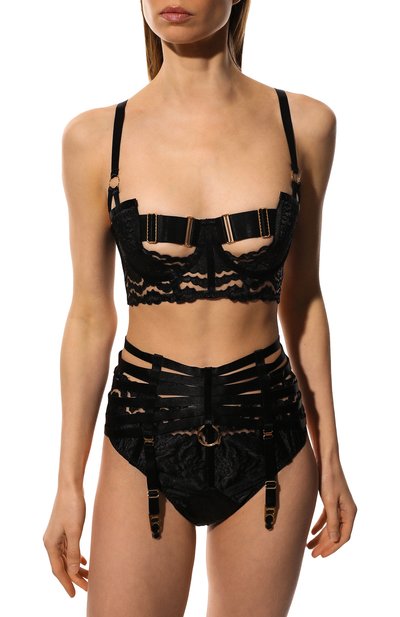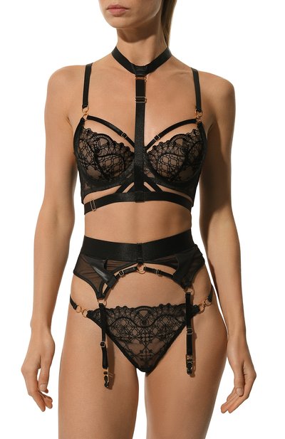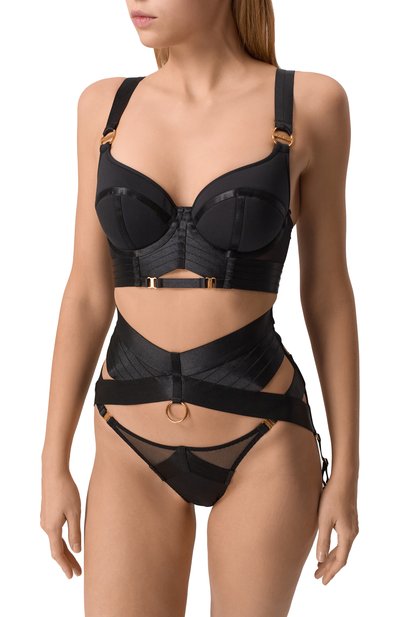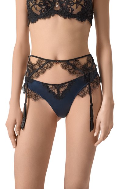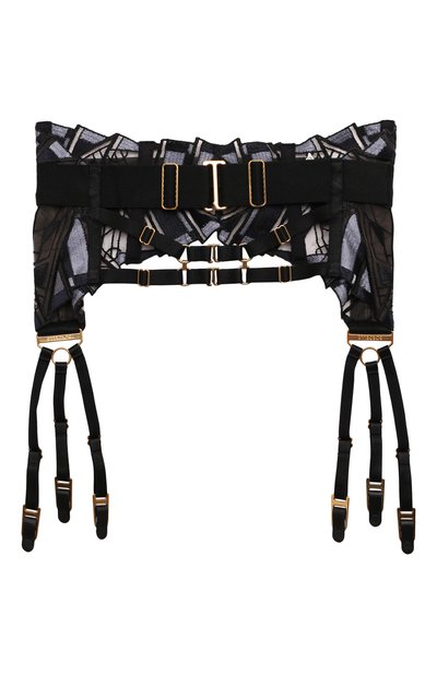 Пояс из стрейчевого тюля с цветочной швейцарской вышивкой люрексом вошел в коллекцию Amela. Модель дополнили регулируемыми ремешками на крючках swan и четырьмя пажами из эластичных атласных лент. Всю фурнитуру покрыли слоем 24-каратного золота.