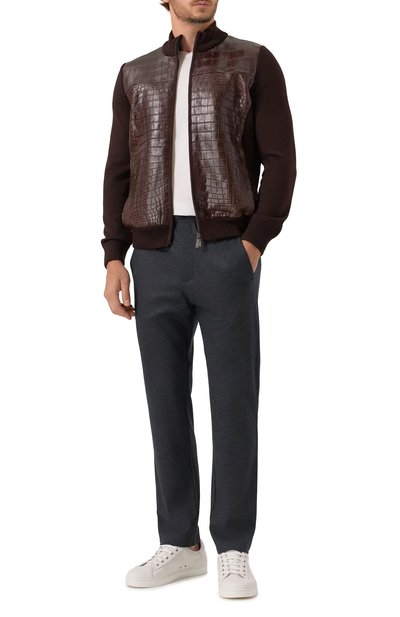 Для пошива слегка зауженных брюк с боковыми и задними карманами использовали вельвет из хлопка с добавлением кашемира. В комплект входит фирменный брелок в форме акулы, который можно закрепить на шлевке.