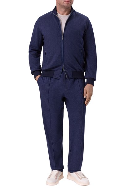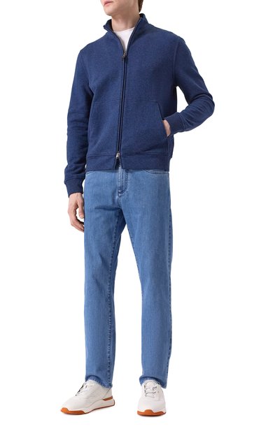 Толстовку в клетку «пепита» выполнили из хлопка с небольшим добавлением полиамида. Модель с высоким воротом, поясом и манжетами из однотонного трикотажа в рубчик застегивается встречной молнией.