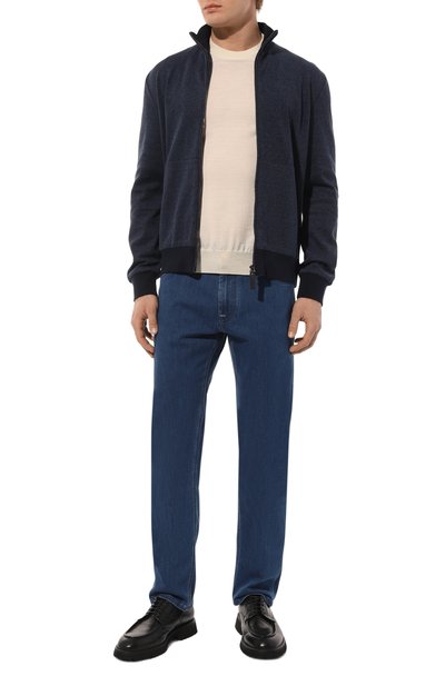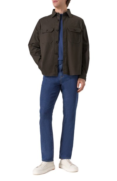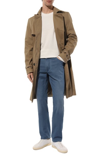Джинсы изготовили из флокированного хлопкового денима с добавлением лиоцелла. Круглую брендированную нашивку поддержали шлевкой, выложенной литерой М на поясе сзади.
