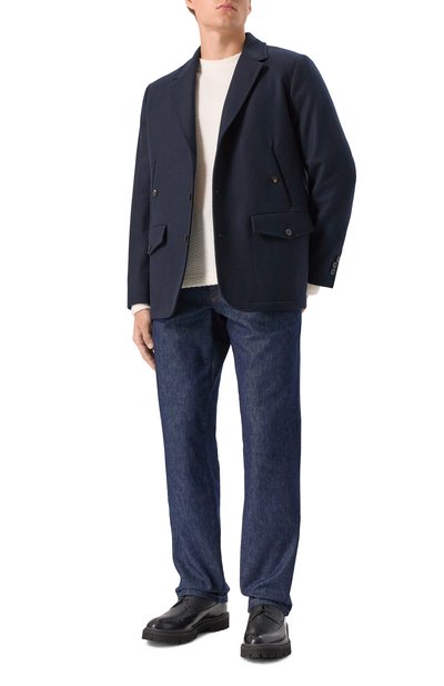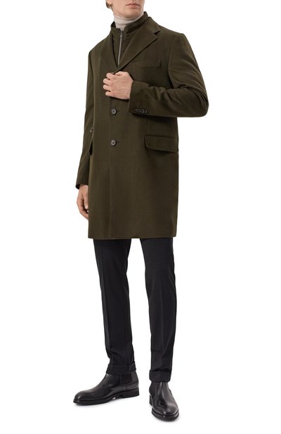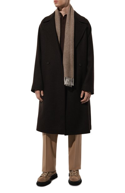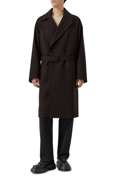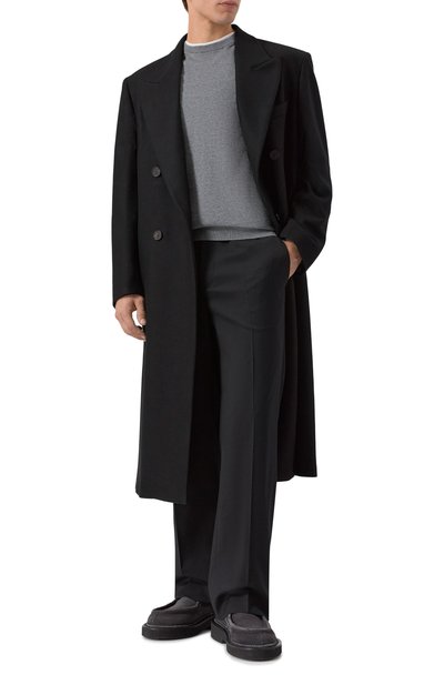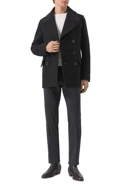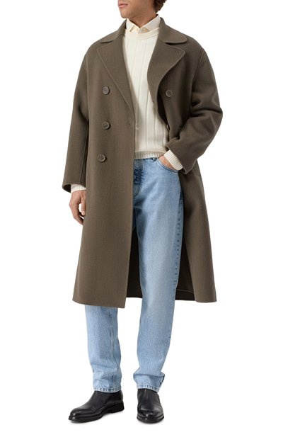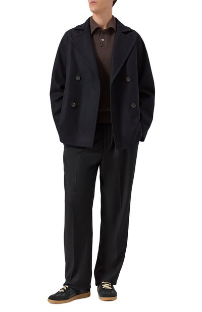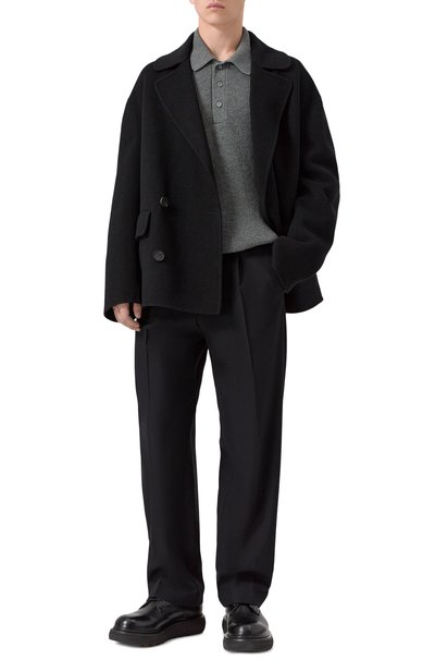 Пальто Galesano с крупными брендированными пуговицами выполнили из ворсистой шерсти в технике double face. Модель со спущенной линией плеч дополнили парой боковых карманов с клапанами.