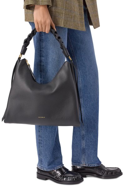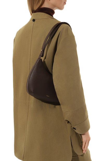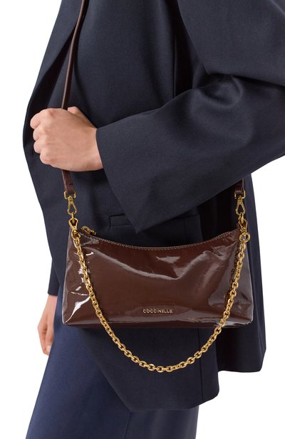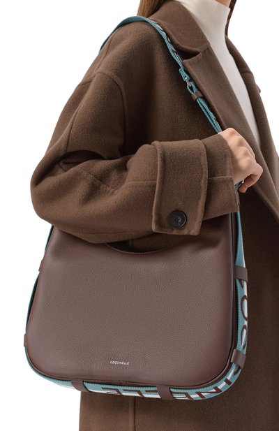 Сумка Nolita с кожаным регулируемым ремнем выполнили из нубука. Аксессуар с тремя внутренними карманами дополнили съемным брелоком в виде монограммы MK.