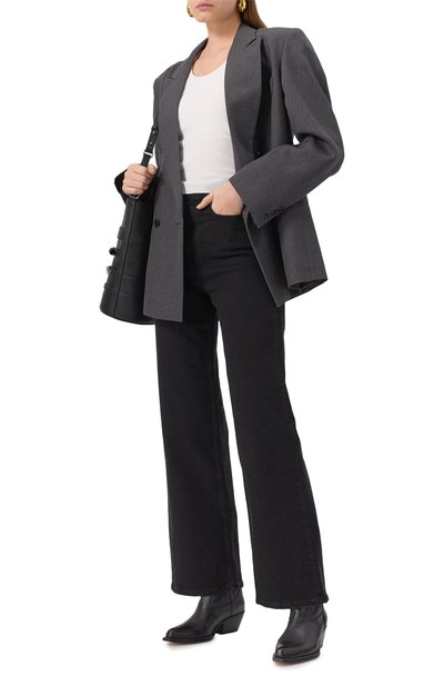Джинсы прямого кроя выполнили из хлопкового денима с небольшим добавлением эластана. Один из пяти карманов модели дополнили контрастной брендированной нашивкой.
