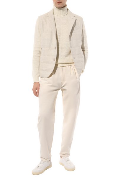 Свитер с рельефным узором и отделкой в рубчик связали из кашемира. Модель с запахом на высокой горловине органично дополнит повседневный гардероб.