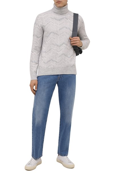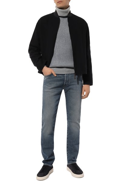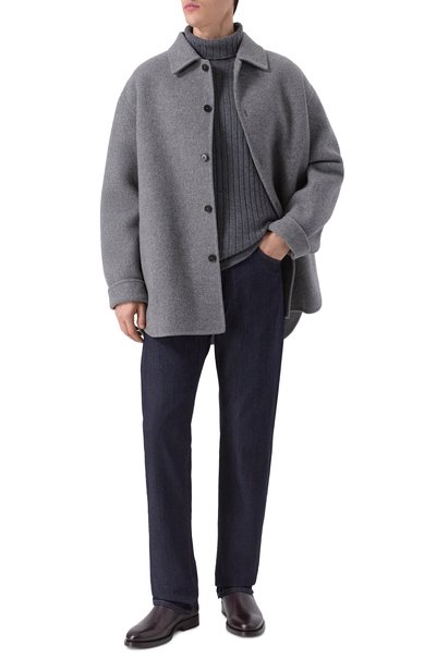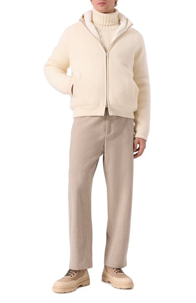 Свитер с рельефным узором и отделкой в рубчик связали из кашемира. Модель с запахом на высокой горловине органично дополнит повседневный гардероб.