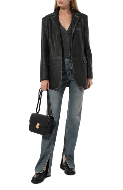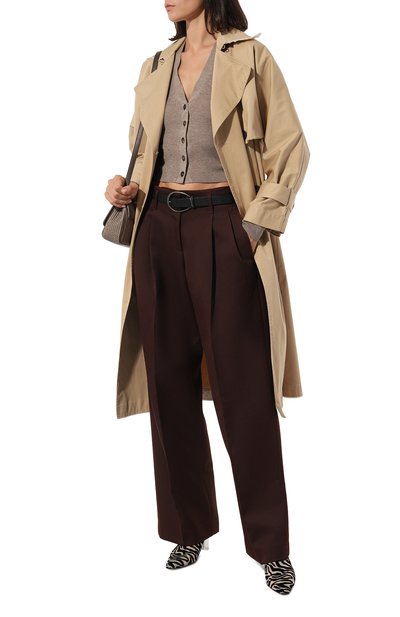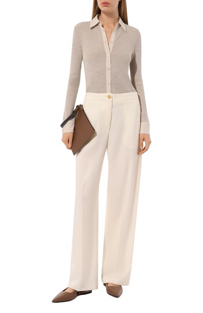Кардиган с глубоким V-образным вырезом выполнили из шелкового трикотажа в рубчик. Лаконичная модель одинаково хорошо сочетается с вещами как светлой, так и темной гаммы.