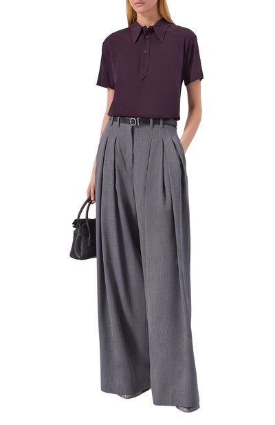 Поло кроя Regular fit органично впишется в повседневный гардероб. Для пошива модели использовали трикотаж из шелка и хлопка. Глубокий V-образный вырез, манжеты и низ подчеркнули контрастным кантом.