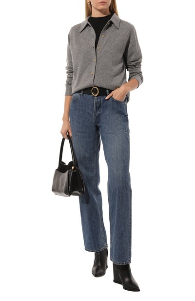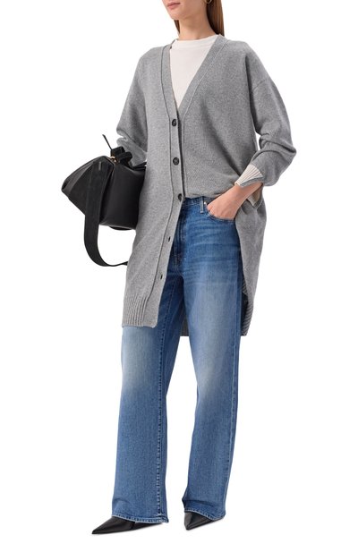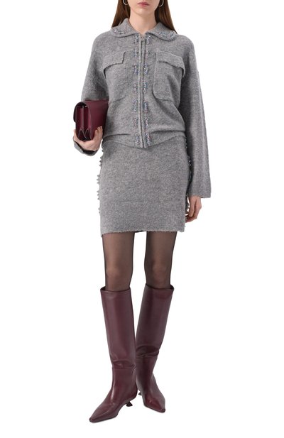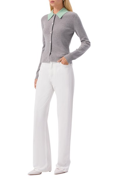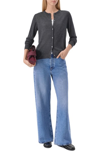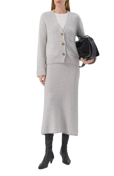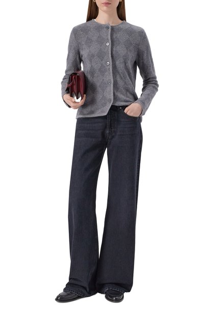 Кардиган на молнии связали резинкой из пряжи на основе шерсти первого пострига и кашемира. Модель с рукавами реглан дополнили увеличенным отложным воротником в широкий рубчик.