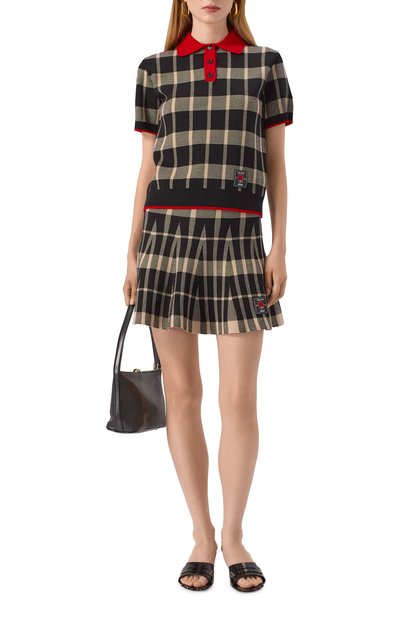 Клетчатую мини-юбку с цельнокроеным поясом выполнили из полиэстеровой ткани. Лаконичная модель застегивается потайной молнией сбоку.