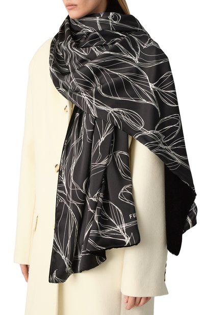 Дутый шарф с цветочным принтом станет выразительным штрихом в образе с однотонными вещами или составит идеальный дуэт с парной курткой. Для пошива длинного аксессуара использовали гладкий шелковистый полиэстер.