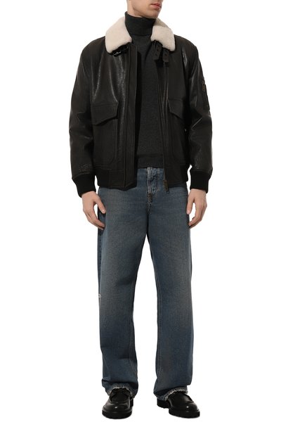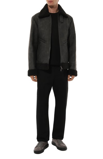 Для изготовления дубленки с отложным воротником использовали искусственную овчину с лицевой стороной под зернистую блестящую кожу. Модель с брендированным патчем на спинке дополнили накладными боковыми карманами с двумя входами.