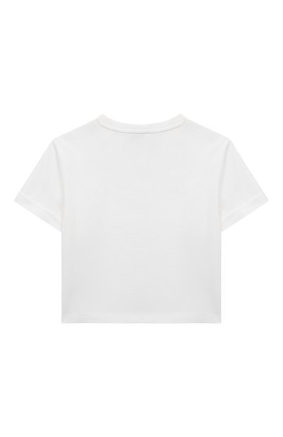 Футболку из хлопкового джерси украсили логотипом на спинке и надписью Live happening right now, вышитой люрексовой нитью спереди. Ее блеск поддержали каймой на рифленой горловине.