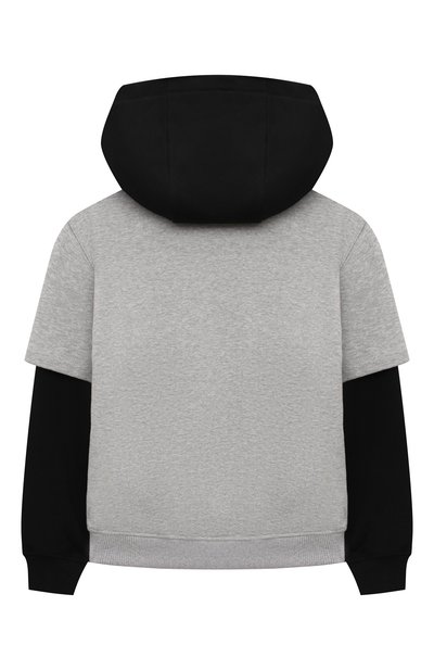 Двухцветное худи с отделкой в рубчик выполнили из хлопкового трикотажа. Модель украсили вышитой надписью Live happening right now спереди и брендированной нашивкой на рукаве реглан.