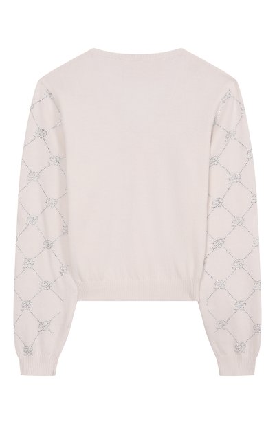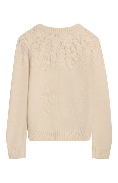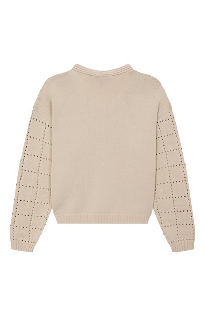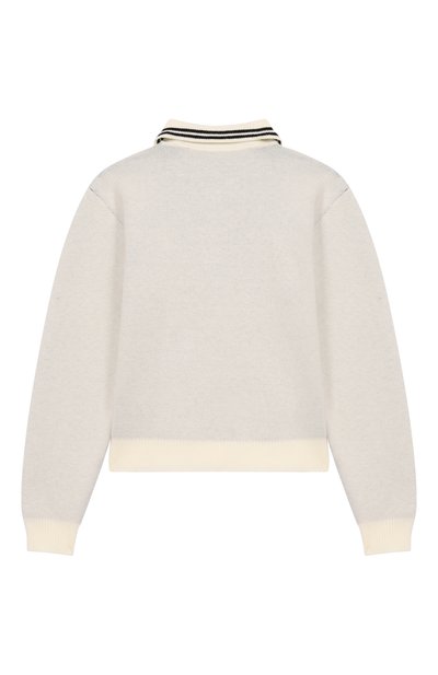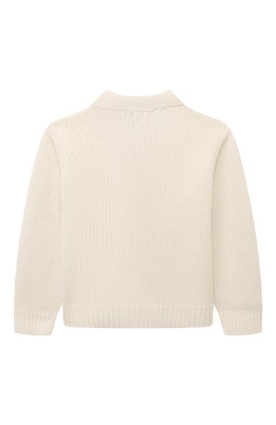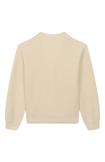 Кардиган связали фактурным узором из шерстяной пряжи с добавлением полиамида и кашемира. Сбоку модель на брендированных пуговицах украсили фирменной нашивкой.