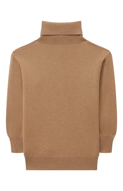 Водолазку с фактурным полосатым узором выполнили из тонкой шерстяной пряжи. Модель с оборками на манжетах, поясе и горловине в рубчик декорировали кожаным патчем с тисненой эмблемой марки.