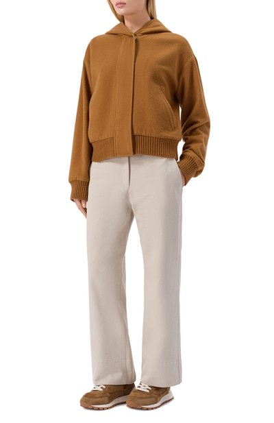 Куртку из плотной шерсти отделали мелкозернистой кожей в тон. По бокам предусмотрели крупные карманы, а на талии – кулиску. Модель на встречной молнии дополнили жилетом-подстежкой из меха американской норки.