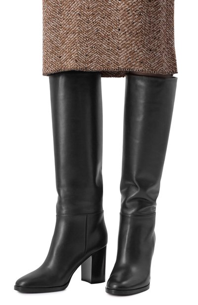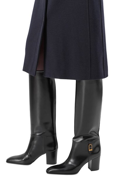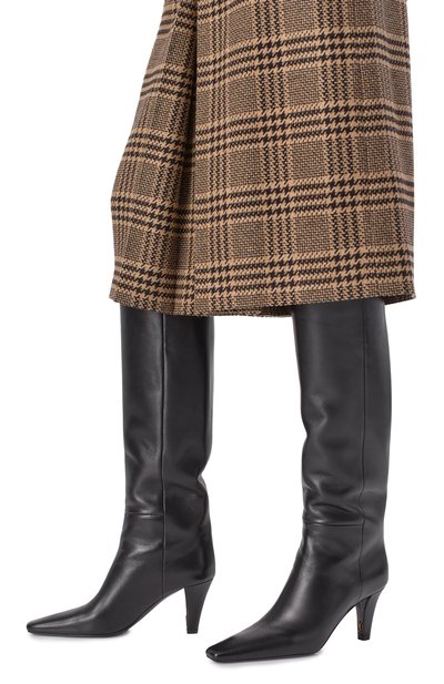 Сапоги Diane с прямым голенищем без застежки выполнили из мелкозернистой телячьей кожи. Щиколотку подчеркнули ремешком с золотистой пряжкой, украшенной монограммой Кассандра. Пару с миндалевидным мысом поставили на высокий каблук.