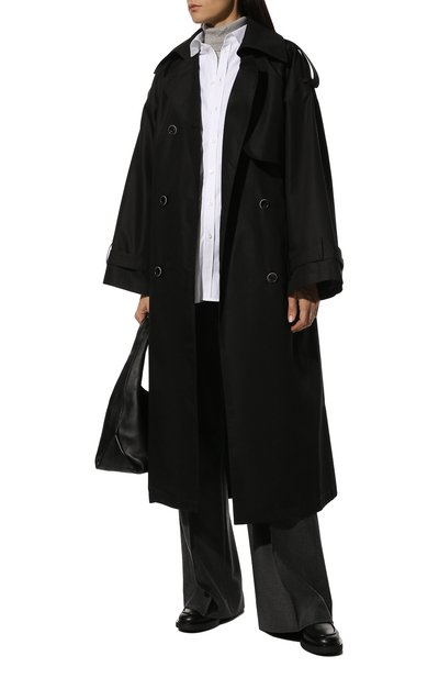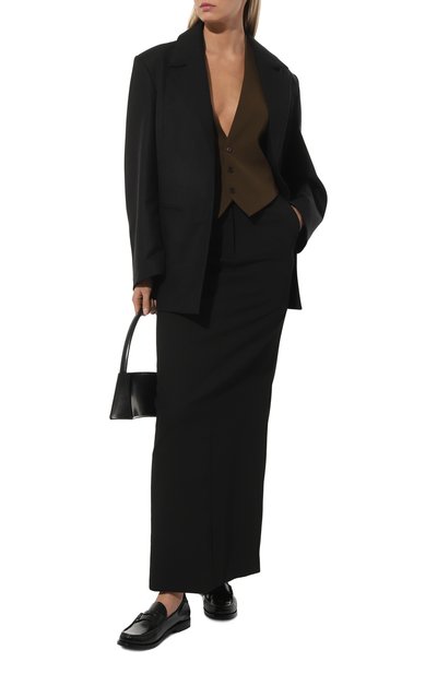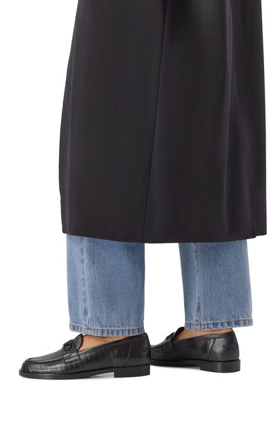 Пенни-лоферы из телячьей кожи дополнили ручным швом на мысе, сформировав вокруг него мелкие складки. Перемычку на союзке правого изделия подчеркнули металлической монограммой Кассандра.