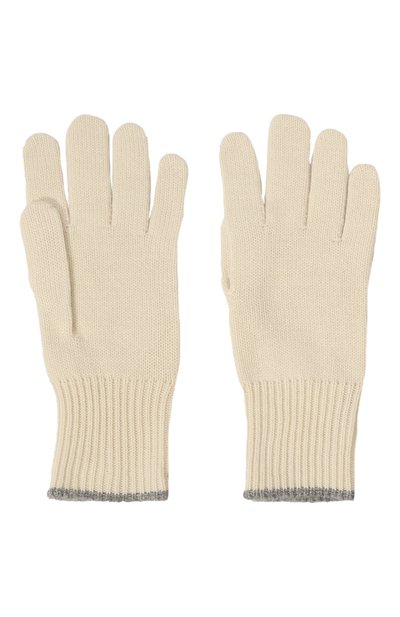 Перчатки связали из меланжевой пряжи на основе шерсти и хлопка. Модель со спущенными петлями декорировали четырьмя фирменными белыми стежками на манжете в рубчик.