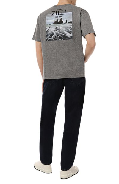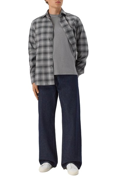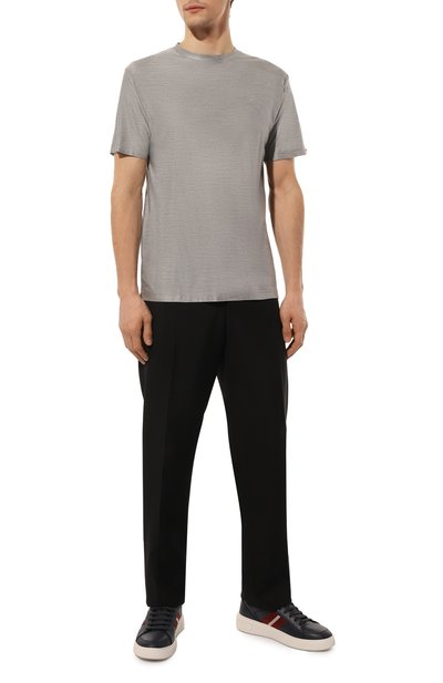 Футболку с круглой горловиной в рубчик украсили вышитой литерой К спереди. Для изготовления модели использовали хлопковое джерси.