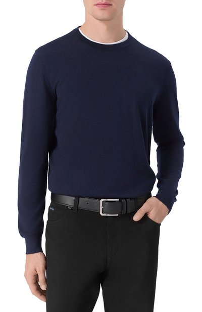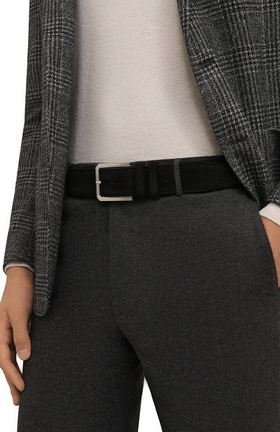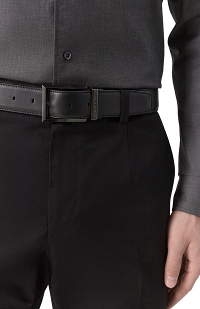 Ремень из гладкой кожи дополнили двумя тренчиками. Аксессуар с вышитым логотипом застегивается прямоугольной металлической пряжкой.