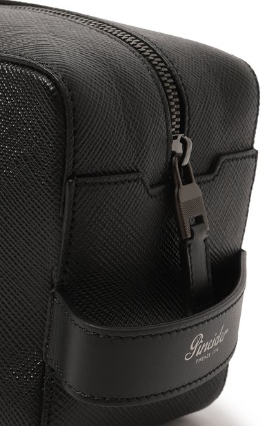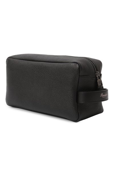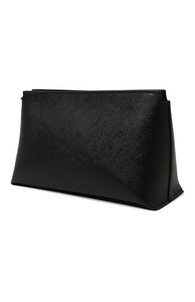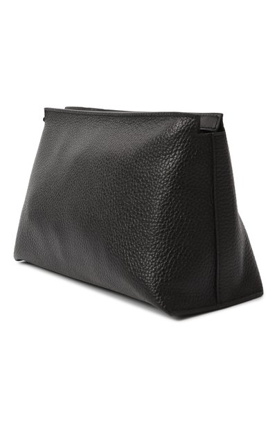 Несессер с боковой ручкой и накладным внутренним карманом выполнили из зернистой кожи. Спереди аксессуар на молнии декорировали стежком фирменного оттенка Golden Cream.