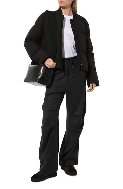 Высокие кеды с брендированным язычком сшили из гладкой кожи. Задник дополнили текстильной петлей. Модель со шнуровкой и боковой молнией установили на гибкую резиновую подошву.