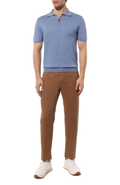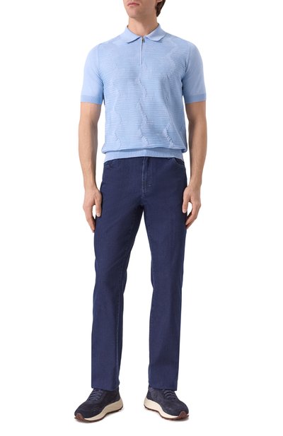Для пошива поло кроя Regular fit использовали гладкий тонкий трикотаж из шелка и хлопка. Модель застегивается молнией, отделанной кантом из кожи миссисипского аллигатора.